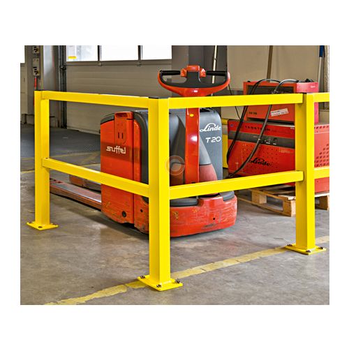 Aizsardzības margas atbalsts (montējams vidus posmā). Izmēri: garums 70mm, platums 70mm, augstums 1000mm, biezums 3mm. atbalsta kāja: 140x160x10mm. Izgatavots no izturīga tērauda. Ātra un viegla uzstādīšana. Krāsa: dzeltena. Svars: 10,5kg.