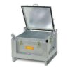 Akumulatoru drošības (glabāšanas) kaste. Ietilpība: 120l. Ideāla kā uzglabāšanas konteiners bojātiem akumulatoriem līdz to izmešanai. Izturīga. Izgatavota no karsti cinkota tērauda ar izturīgiem bloķēšanas klipšiem. Gumijas blīvējums aizsargā pret mitruma iekļūšanu. Papildus var izmantot vermikulītu vai putuplasta stikla granulas kā triecienmateriālu. Izmēri: ārējie 715x715x580mm, iekšējie – 580x580x390mm. Svars tukšai kastei: 54kg. Maksimālais svars: 170kg.