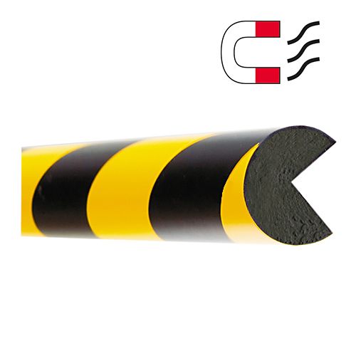 Apļa veida magnētisks stūru aizsargs. Viegli pievienot pie metāla virsmām (tērauda sijām, barjerām, rāmjiem). Krāsa: dzeltena ar melnu. Izgatavots no poliuretāna putām. Izmēri: 40x40mm, garums 1000mm, UV staru izturīgs, elastīgs, nesatur silikonu. Temperatūras izturība no -40 grādiem līdz +90 grādiem pēc Celsija grādiem.