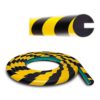 Apļveida stūru aizsargs ar izgriezumu. Krāsa: dzeltena ar melnu. Izgatavots no poliuretāna putām. Izmēri: 40x40x8mm, garums 5000mm, izgriezuma izmēri 8x20mm. UV staru izturīgs, elastīgs, nesatur silikonu. Temperatūras izturība no -40 grādiem līdz +90 grādiem pēc Celsija grādiem.