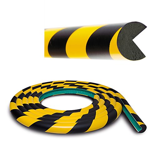 Pašlīmējošs apļveida stūru aizsargs ar taisnleņķa izgriezumu. Krāsa: dzeltena ar melnu. Izgatavots no poliuretāna putām. Izmēri: 40x40mm, garums 5000mm, izgriezuma izmēri 25x25mm. UV staru izturīgs, elastīgs, nesatur silikonu. Temperatūras izturība no -40 grādiem līdz +90 grādiem pēc Celsija grādiem.