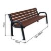 Atpūtas soliņš ar atzveltni un metāla korpusu, ar 9 koka dēļiem. Garums: 150cm. Kopējais augstums: 77cm. Augstums no zemes līdz sēdeklim: 43cm. Kopējais platums: 70cm. Sēdekļa platums: 46cm. Caurules izmērs: diametrs 60,3mm x 2mm. Metāla korpuss krāsots un cinkots. Stiprināšana pie pamatnes ar 4 skrūvēm. Soliņš pieejams dažādās korpusa un dēlīšu krāsās. Svars: 42kg.