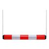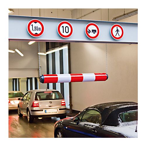Plastmasas augstuma ierobežotājs, sarkans ar baltām atstarojošām joslām. Izmēri: garums 950mm, diametrs 100mm. Komplektā 2m garas ķēdes (2gb.). Melni sānu stiprinājumi.