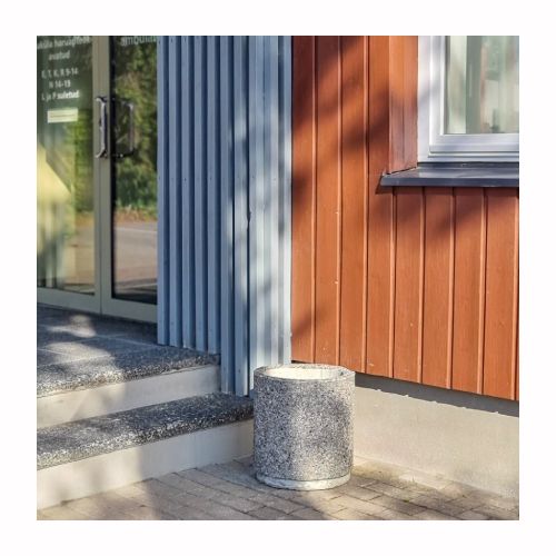 Betona atkritumu tvertne, apaļa. Ar metāla ieliktni-grozu. Izmēri: d=380mm, augstums 400mm. Tilpums: 10L. Svars: 67kg. Iespējamie betona toņi: P101, P103, P106, S101, S103, S104.
