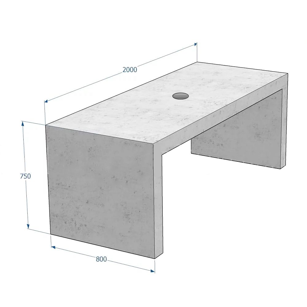 Betona galds ar caurumu saulessargam, 2000x800x750mm