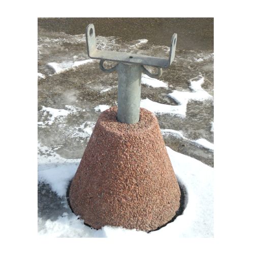 Betona pēda. Svars: 27kg. Izmēri: apakšējais d=320mm, augšējais d=160mm, augstums 260mm, cauruma izmērs – augšā d=60mm, apakšā – 40mm.