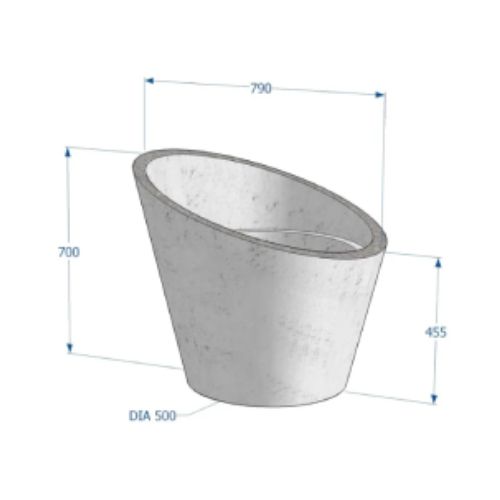 Betona puķu pods (konusveida). Izmēri: diametrs apakšā 500mm, diametrs augšdaļā 790mm, augstums apakšējā daļā 455mm, augstums augšējā daļā 700mm. Svars: 170kg. Iespējamie betona toņi: S101, S103, S104, S205, dzelzs rūsa.