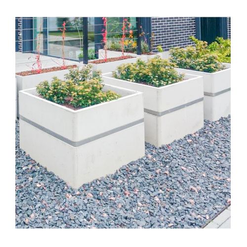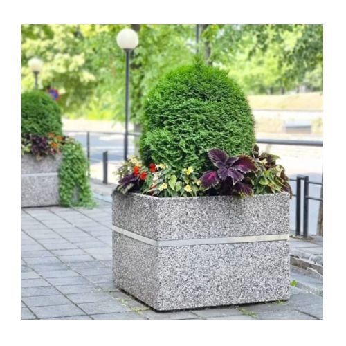 Betona puķu pods (kvadrātveida) ar nerūsējošā tērauda joslu, 900x900x700mm