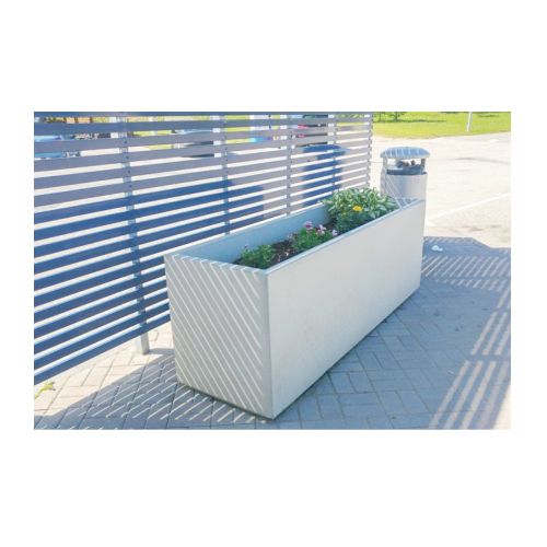 Betona puķu pods (taisnstūrveida). Izmēri: garums 2000mm, platums 600mm, augstums 700mm. Svars: 845kg. Iespējamie betona toņi: S101, S103, S104, S205. Pieejams uz pamatnes pēdām vai bez tām (pēc vajadzības).