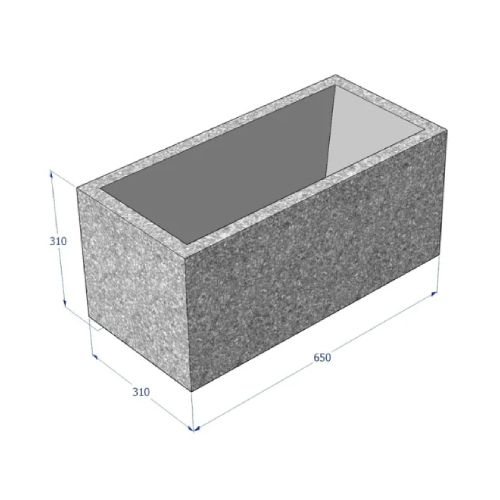 Betona puķu pods (taisnstūrveida). Izmēri: garums 650mm, platums 310mm, augstums 310mm. Svars: 65kg. Iespējamie betona toņi: P101, P103, P104, P106.