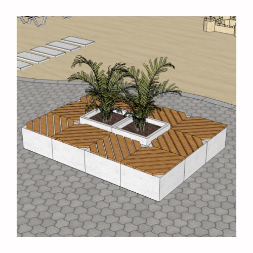 Betona soliņš (moduļveida). Pieejams arī ar koka dēlīšiem (par papildus samaksu). Izmēri: garums 660mm, platums 660mm, augstums 400mm. Svars: 230kg. Iespējamie betona toņi: S101, S102, S103, S104, S201, S202, S203, S204, S205, L101, L102, L103, L104, L105, L106, L107, L201, L202, L203, L303, L304, L405, L406, L407.