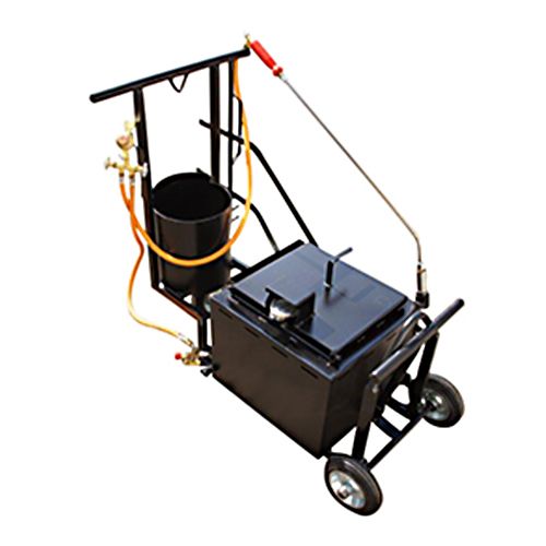 Bituma karsējamais katls – 50L (uz riteņiem) precīzai asfalta šuvju aizpildīšanai. Propāna gāzes turētājs, temperatūras mērītājs u.c. aprīkojums. (Vācija)