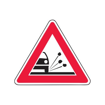 Brīdinājuma zīme Nr.116/Uzbērta grants vai šķembas. Izmēri: 900x900mm. 2. atstarošanas klase.