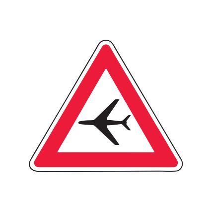 Brīdinājuma zīme Nr.129/Zemu lidojošas lidmašīnas. Izmēri: 900x900mm. 2. atstarošanas klase.