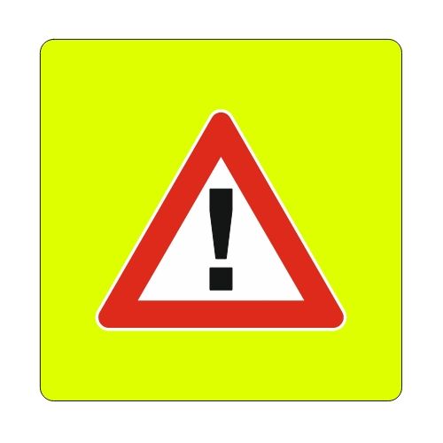 Brīdinājuma zīme Nr.142F/Bīstami. Ar fluorescējošu rāmi apkārt. Izmēri: 940x940mm. 2. atstarošanas klase.