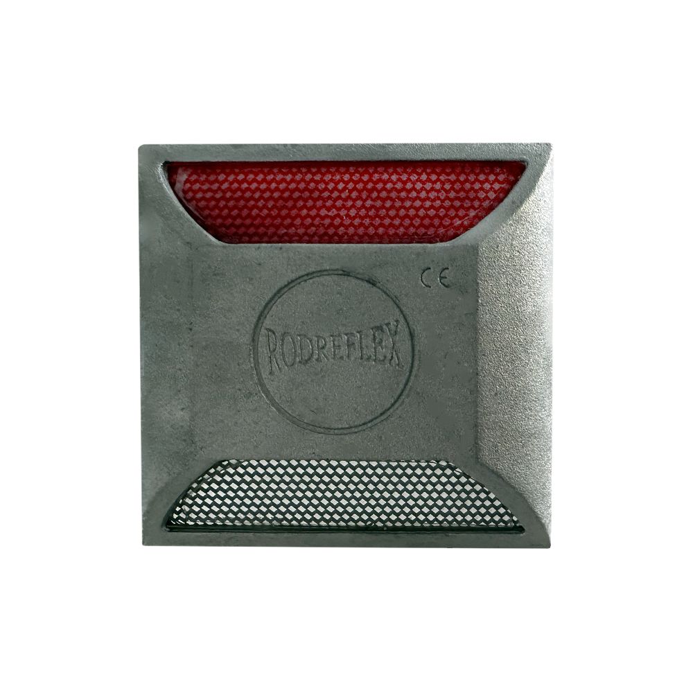 Ceļa atstarotājs (alumīnija). Izmēri: garums 105mm, platums 105mm, kopējais augstums 70mm, biezums 20mm, montāžas kājas garums 50mm. Materiāls: alumīnija apvalks ar epoksīda pildījumu. Redzamības distance: virs 200m. Spiedes pretestība: 16 tonnas. IP68 mitruma izturība. Atstarošanas elementi: sarkani/balti. Stiprināšana asfaltā ar speciālu līmi (ķīmiju). Svars: 0,3kg.