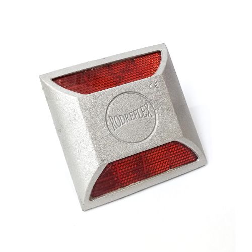 Ceļa atstarotājs (alumīnija). Izmēri: garums 105mm, platums 105mm, kopējais augstums 70mm, biezums 20mm, montāžas kājas garums 50mm. Materiāls: alumīnija apvalks ar epoksīda pildījumu. Redzamības distance: virs 200m. Spiedes pretestība: 16 tonnas. IP68 mitruma izturība. Atstarošanas elementi: sarkani/sarkani. Stiprināšana asfaltā ar speciālu līmi (ķīmiju). Svars: 0,3kg.