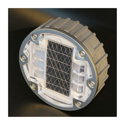 Ceļa atstarotājs, kas aprīkots ar LED diodēm un saules baterijām. Krāsa: balta. Izmēri: diametrs 143mm, augstums 50mm. Saules panelis: 5V/140mAh. Akumulators: 3.2V/1500mAh (litija baterija). Darba režīmi: mirgojošs (120 reizes/minūtē) vai pastāvīgs. Aprīkota ar 6gab. ļoti gaišām LED diodēm. Redzes diapazons: vairāk kā 1000m. Gaismas intensitāte: 400-500lx. Darba temperatūra: -20 līdz +80 grādi pēc Celsija. Ūdensizturības klase: IP68. Darbības ilgums: vairāk kā 220h mirgojošajam režīmam/100h pastāvīgajam režīmam. Darbības ilgums: >5-8 gadi litija baterijai. Saspiešanas pretestība: >100T. Materiāls: polikarbonāts (PC) un alumīnijs. Nerūsējošā tērauda skrūves. Gumijas blīve. Alumīnija korpuss. Stiprināms asfaltā vai betonā ar speciālu līmi. Iztur 80t slodzi.