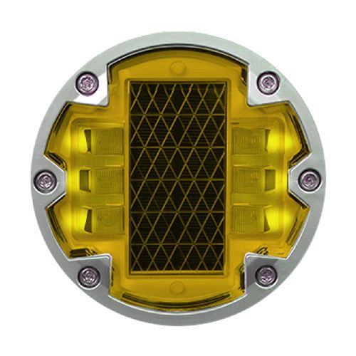 Ceļa atstarotājs, kas aprīkots ar LED diodēm un saules baterijām. Krāsa: dzeltena. Izmēri: diametrs 143mm, augstums 50mm. Saules panelis: 5V/140mAh. Akumulators: 3.2V/1500mAh (litija baterija). Darba režīmi: mirgojošs (120 reizes/minūtē) vai pastāvīgs. Aprīkota ar 6gab. ļoti gaišām LED diodēm. Redzes diapazons: vairāk kā 1000m. Gaismas intensitāte: 400-500lx. Darba temperatūra: -20 līdz +80 grādi pēc Celsija. Ūdensizturības klase: IP68. Darbības ilgums: vairāk kā 220h mirgojošajam režīmam/100h pastāvīgajam režīmam. Darbības ilgums: >5-8 gadi litija baterijai. Saspiešanas pretestība: >100T. Materiāls: polikarbonāts (PC) un alumīnijs. Nerūsējošā tērauda skrūves. Gumijas blīve. Alumīnija korpuss. Stiprināms asfaltā vai betonā ar speciālu līmi. Iztur 80t slodzi.