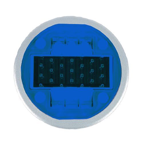 Ceļa atstarotājs, kas aprīkots ar LED diodēm un saules baterijām. Krāsa: zila. Izmēri: diametrs 135mm, augstums 50mm. Saules panelis: 2.5V/180mAh Ni-Mh baterijai vai 5V/90mAh litija baterijai. Akumulators: 3.2V/1000mAh (litija baterijai). Darba režīmi: mirgojošs (120 reizes/minūtē) vai pastāvīgs. Aprīkota ar 6gab. ļoti gaišām LED diodēm. Redzes diapazons: vairāk kā 1000m. Gaismas intensitāte: 400-500lx. Darba temperatūra: -20 līdz +80 grādi pēc Celsija. Ūdensizturības klase: IP68. Darbības ilgums: vairāk kā 200h mirgojošajam režīmam/100h pastāvīgajam režīmam. Darbības ilgums: >5-8 gadi litija baterijai. Saspiešanas pretestība: >30T. Materiāls: polikarbonāts (PC) un alumīnijs. Alumīnija korpuss. Stiprināms asfaltā vai betonā ar speciālu līmi.