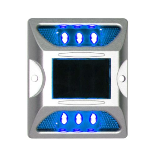 Ceļa atstarotājs, kas aprīkots ar LED diodēm un saules baterijām. Krāsa: zila. Izmēri: garums 122mm, platums 104mm, augstums 23mm. Saules panelis: 2.5V/120mAh. Akumulators: 1.2V/600mAh (NI-Mh baterija). Darba režīmi: mirgojošs vai pastāvīgs. Aprīkota ar 6gab. ļoti gaišām LED diodēm (d=5mm). Redzes diapazons: vairāk kā 800m. Gaismas intensitāte: 400-500lx. Darba temperatūra: -20 līdz +80 grādi pēc Celsija. Ūdensizturības klase: IP68. Darbības ilgums: vairāk kā 200h mirgojošajam režīmam/72h pastāvīgajam režīmam. Darbības ilgums: 3-5 gadi. Saspiešanas pretestība: >20T. Materiāls: polikarbonāts (PC), alumīnijs un PMMA atstarotāji. Alumīnija korpuss. Stiprināms asfaltā vai betonā ar 2 skrūvēm vai pielīmējams ar speciālu līmi.