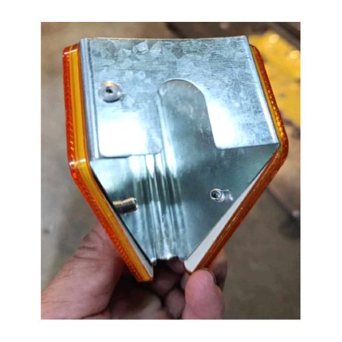 Ceļa barjeru atstarotājs (montējams barjerā, abpusējs). Krāsa: balta-balta. Materiāls: tērauda stiprinājums un polimēru materiāla (PMMA). Izmēri: garums 121mm, platums 70.5mm, augstums 50/65mm. Stiprinājums biezums: 1.5mm. Pielieto piestiprināšani ceļu norobežošanas barjerās u.c. Ūdens un saules izturīgs. Pieejamie veidi: abpusēji dzeltens, abpusēji sarkans un balts-dzeltens katrā pusē vai cits individuāls veids pēc pasūtījuma. Kastē: 100gab. Cena par gab.!