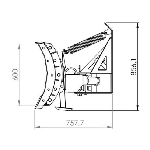 Diagonālā sniega lāpsta (priekšpusē uzstādāma, hidrauliska) ar grozāmiem sānu spārniem. Skrūvējams lielais BM stiprinājums. Darba platums 2000mm+250mm+250mm (kopā 2500mm). Darba augstums: 600mm. Maināmi tērauda naži. Hidrauliski grozāms priekšējais vairogs. Lāpstai ir dubulti noņemami sānu spārni (spārni palīdz viegli tikt galā ar lielāku sniega daudzumu). Sniega lāpstas atbalsta pēdas sadala spēku uz leju, neļaujot iegrimt zemē un nevajadzīgi nodilt tērauda nažiem. Augstais nazis (asmens) nodrošina izcilu veiktspēju, lai tiktu galā ar lielu sniega daudzumu. Aukstā laikā (ap -20°C), sniegs neuzkrājas naža augstuma dēļ, uzlabo redzamību un palielina drošību. Nepieciešama divkāršās darbības hidrauliskā traktora jauda. Hidrauliska sānu regulēšana ar iespaidīgu +30/-30° pagriešanas diapazonu. Aprīkota ar pārslodzes vārstu, divām hidrauliskajām šļūtenēm ar ½ collu ātrajiem savienojumiem. Svars: 386kg.