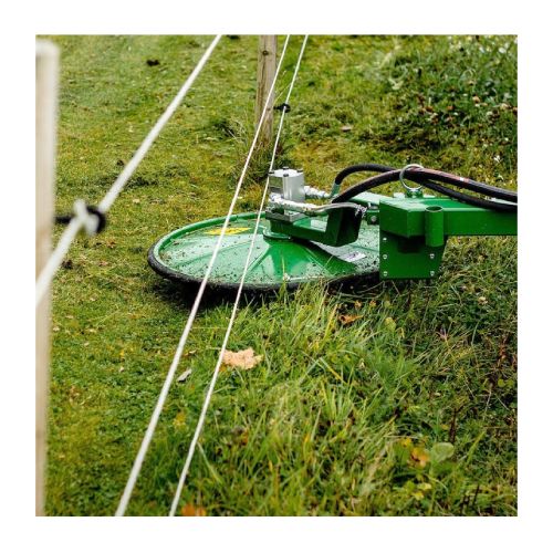Diska veida apmalu pļāvējs – trimmeris. Darba platums 800mm, darba augstums 1000mm. Piemērots efektīvai zāles pļaušanai zem žogiem, blakus ēkām, ceļmalās, ap stabiem u.c. Stiprināms pie frontālā iekrāvēja priekšpusē ar Trima stiprinājumu. Aprīkots ar 1 rotoru. Maksimālais eļļas spiediens 190 bāri. Eļļas plūsma – min. 30l/min., max 45l/min. Hidrauliskā izeja: 3 hidrauliskās šļūtenes, spiediena/atgriešanas/noplūdes līnija. Hidrauliskā sānu nobīde. Aprīkots ar 2 jaudīgiem nažiem. Jaudīgs atsperes griešanas disks. Spēcīga aizsargplāksne apakšā, kas neļauj nažiem atsisties pret zemi. Dzinējs: Parker 23 m³ (ar iebūvētu spiediena ierobežotāju). Pļāvēja disks ir atsperots, lai, braucot pret stabiem, aizsragplāksne un disks atspertos atpakaļ. Atsperes funkcija sniedz iespēju griezt taisni zem žoga stieples un ap stabiem, neregulējot traktora piedziņas virzienu. Jānodrošina, lai traktoram būtu savienojums, lai noplūdes caurule no hidrauliskā motora varētu nonākt tieši uz traktora hidrauliskās eļļas tvertni. Savienojumam jābūt bez spiediena – (0 Bar). Noplūdes līnija iet tieši uz hidrauliskās tvertnes transportlīdzekli, šļūtene nav iekļauta. Pļāvējam nepieciešama traktora vienkāršas darbības (atgriešanas) un divkāršas darbības hidrauliskā izvade. Komplektā ietilpst: rāmis plāvēja uzstādīšanai, Trima stiprinājums, hidrauliskās šļūtenes ar 1/2 collu vīrišķo savienojumu un atbalsta kājas. Svars: 200kg.