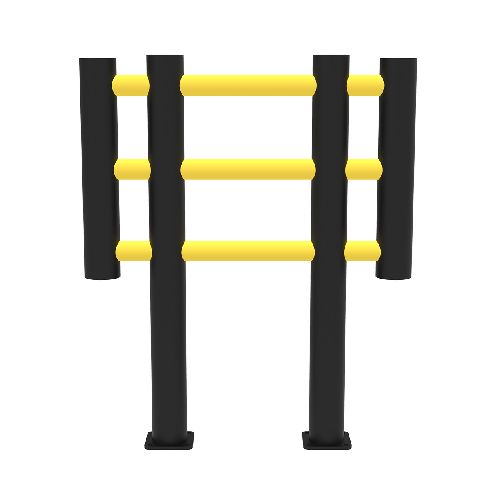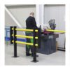 Elastīgā drošības barjera darba zonām (FOXTROT). Izmērs: garums 1004mm, augstums 1200mm, dziļums 150mm (bez pamatnes pēdas – 110mm), pamatne 150x150x10mm, caurules d=110mm. Stiprināšana pie pamatnes ar 8 skrūvēm (M10x70mm, iekļautas komplektā). Izgatavota no polietilēna. Krāsa: dzeltenmelna. Barjera izmantojama iekštelpās un ārā. Tiek piegādāta jau iepriekš samontēta. Iztur 2500J lielu spēku vai 2000kg transportlīdzekļa masas ekvivalentu, vai 5.7km/h transportlīdzekļa ekvivalento ātrumu. Ekvivalents trieciena leņķis 90°. Deformācija pie maksimālā spēka: 250mm. Temperatūras diapazons -40°C līdz +50°C. 100% pārstrādājama. Ķīmiskā izturība ar augstu ISO/TR 10358. Svars: 17kg.