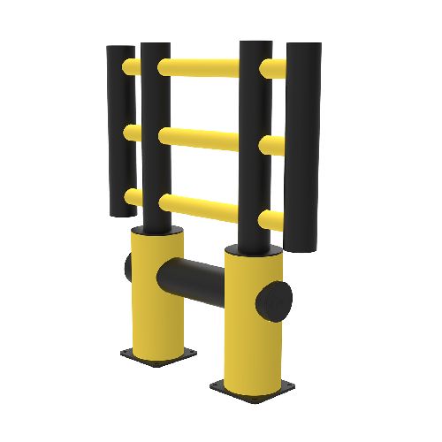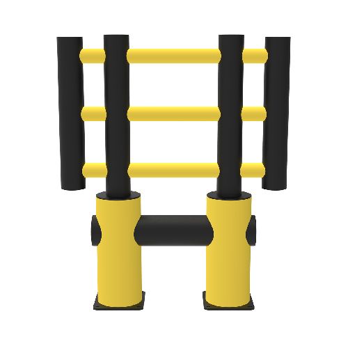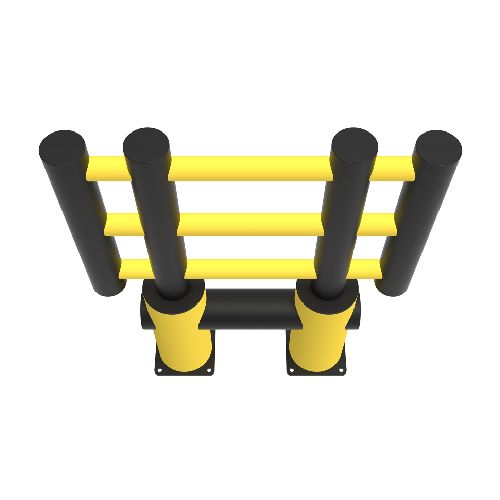Elastīgā drošības barjera darba zonām (KILO). Izmērs: garums 1003mm, augstums 1200mm, dziļums 225mm (bez pamatnes pēdas – 200mm), pamatne 225x225x10mm, caurules d=110/200mm. Stiprināšana pie pamatnes ar 8 skrūvēm (M12x80mm, iekļautas komplektā). Izgatavota no polietilēna. Krāsa: dzeltenmelna. Barjera izmantojama iekštelpās un ārā. Tiek piegādāta jau iepriekš samontēta. Iztur 2500J lielu spēku augšpusē, 10000J apakšpusē vai 5000kg transportlīdzekļa masas ekvivalentu, vai 7.2km/h transportlīdzekļa ekvivalento ātrumu. Ekvivalents trieciena leņķis 90°. Deformācija pie maksimālā spēka: 250mm. Temperatūras diapazons -40°C līdz +50°C. 100% pārstrādājama. Ķīmiskā izturība ar augstu ISO/TR 10358. Svars: 41.1kg.