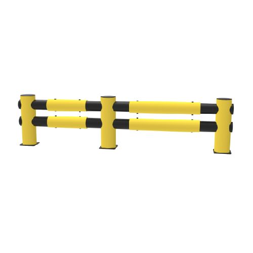 Elastīgās drošības barjeras (HOTEL) sākuma/beigu posms. Izmēri: augstums 706mm, dziļums 225mm (bez pamatnes plāksnes 200mm), platums 619mm (montāžas platums 419mm), pamatne 225x225x10mm, caurules d=200mm. Stiprināšana ar 4 skrūvēm (M12x80mm; iekļautas komplektā). Izgatavots no polietilēna. Krāsa: dzeltenmelna. Iztur 4000J lielu spēku vai 5000kg transportlīdzekļa masas ekvivalentu, vai 7.2km/h transportlīdzekļa ekvivalento ātrumu. Ekvivalents trieciena leņķis 90°. Deformācija pie maksimālā spēka: 250mm. Piemērota gan iekštelpās, gan āra apstākļos temperatūrā no -40°C līdz 50°C. Vienkārša montāža. 100% pārstrādājama. TÜV sertifikāts. Tiek piegādāta jau iepriekš samontēta. Svars: 14.5kg.