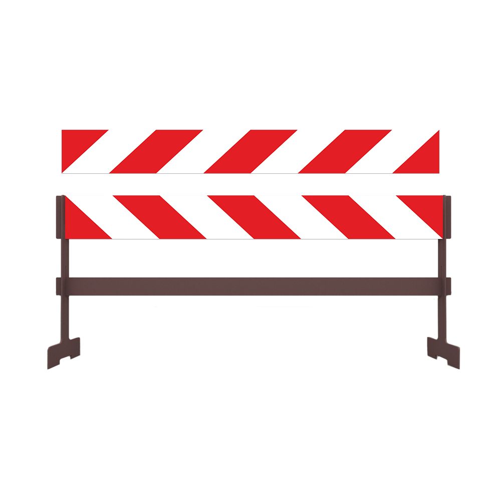 Finiera barjera 2000x250mm (Nr.910 un Nr.911) ar atstarojošām joslām (virziens pa labi/ pa kreisi katrā barjeras pusē). Komplektā 2 koka kājas – h=1000mm.