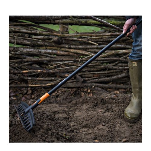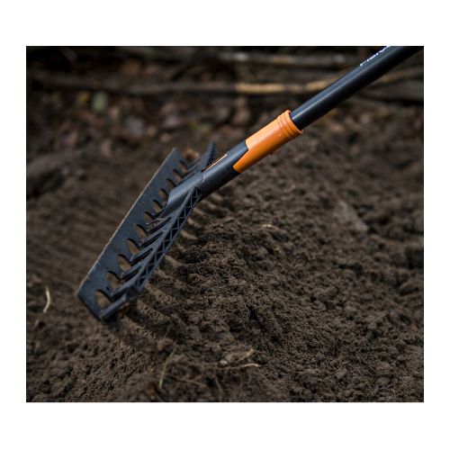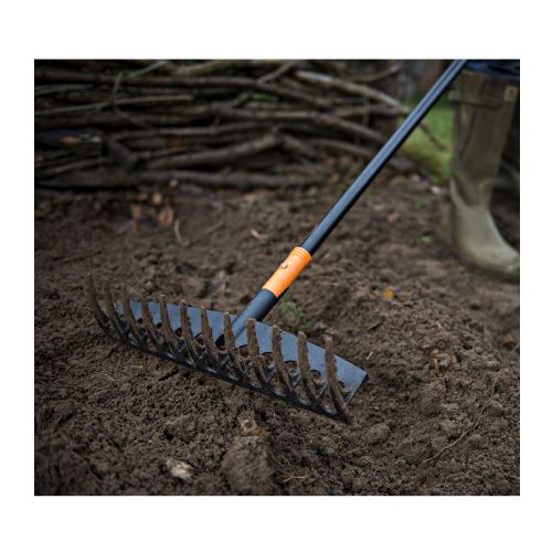 Fiskars Solid universālais grābeklis. Izmēri: garums 1640m, platums 410mm. Svars: 0.60kg. Lielisks darbarīks dobju sagatavošanai stādīšanai. Dobju izlīdzināšanai. Fiskars Solid universālais dārza grābeklis ir ideāli piemērots zaru vai mauriņa grābšanai. Tas ir arī lielisks palīgs, lai sagatavotu augu dobes un nolīdzinātu augsni.