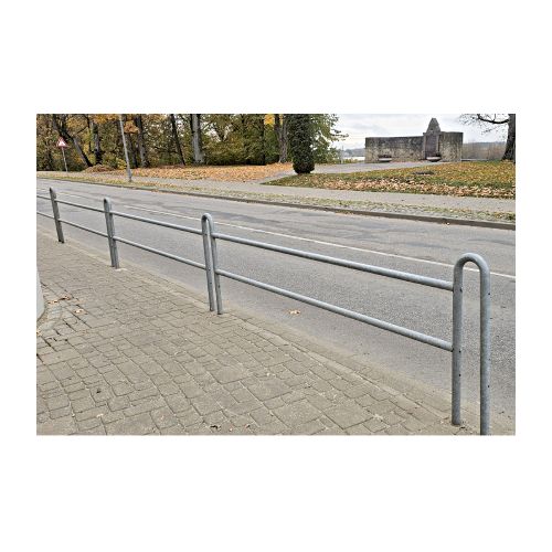 Gājēju barjera “Jelgavas tipa”. Sastāv no sekcijas un vertikālajiem stabiem. Izmēri: garums 2600mm, sekcijas augstums 400mm, kopējais augstums no zemes virsmas 1300mm, caurules d=48.3mm. Materiāls: melns metāls, elementu konstrukcija apstrādāta ar karstās cinkošanas metodi atbilstoši LVS EN ISO 1461 prasībām, kura nodrošina augstas kvalitātes aizsardzību pret metāla koroziju. Konstrukcija stiprināma zemē, iebetonējot stabus vai mehāniski nostiprinot tos virsmā. Paredzēta ceļu satiksmes regulēšanai vai drošības veicināšanai, kā arī satiksmes norobežošanai, samazinot ceļu satiksmes negadījumu sekas, kā arī lai novērstu neatļautu ielas šķērsošanu.