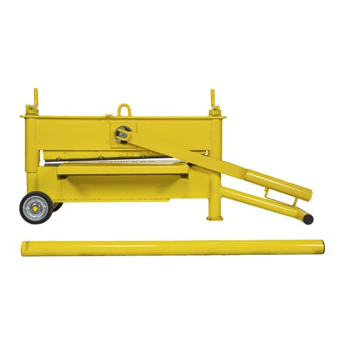 Giljotīna plātņu griešanai ar 2 atsperēm un pagarinājuma cauruli (21 tonnu spēkam – nepieciešams par 25% mazāk spēka). Minimālais griešanas augstums 10mm, maksimālais griešanas augstums 120mm. Maksimālais griešanas platums 650mm. Rūdīts fiksēts nazis. 4 griešanas malas. Pulverkrāsots dzeltens (RAL 1021). Griezēja izmēri: 1200x310x630mm. Iepakojuma izmēri: 1000x1200x550mm. Garantija 7 gadi (izņemot dilstošās daļas). Pieejamas arī rezerves daļas (asmeņi, ritenis, skrūves u.c.). Svars: 81kg.
