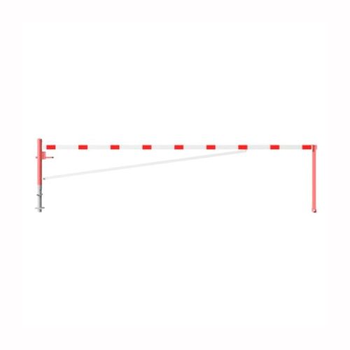 Horizontāli grozāma barjera (ar metāla trosi) ar atbalsta stabu (ar euro-profila cilindra slēdzeni), 6000mm (betonējama) [SCH]