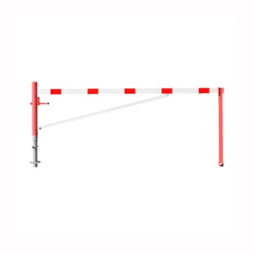 Horizontāli grozāma barjera (ar metāla trosi) ar atbalsta stabu (ar piekaramo atslēgu), 3500mm (betonējama) [SCH]