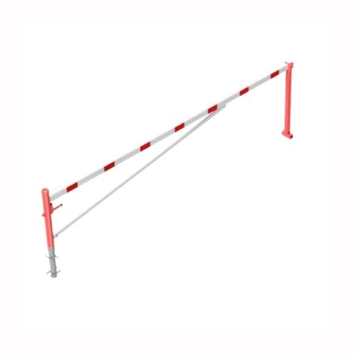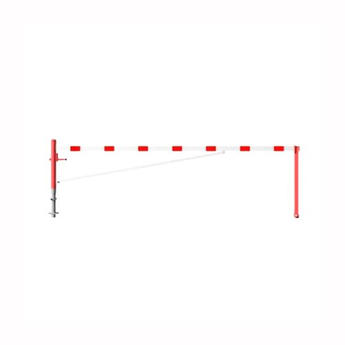 Horizontāli grozāma barjera (ar metāla trosi) ar atbalsta stabu (ar piekaramo atslēgu), 5000mm (betonējama) [SCH]