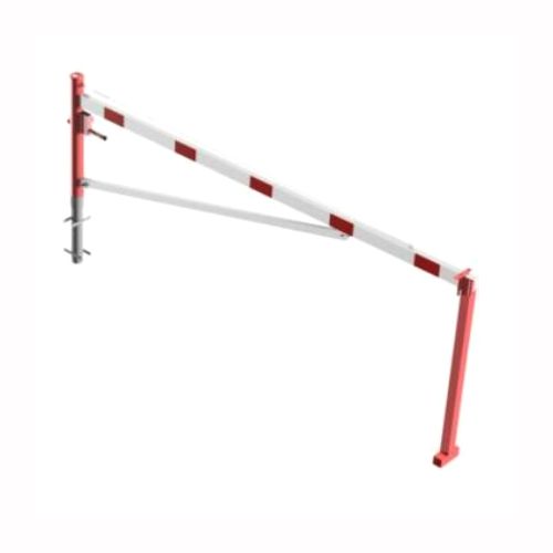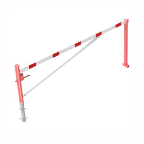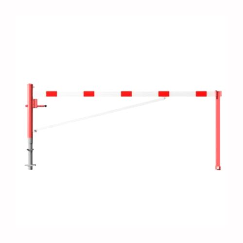 Horizontāli grozāma barjera (ar metāla trosi) ar atbalsta stabu (ar trijstūrveida slēdzeni), 3500mm (betonējama) [SCH]