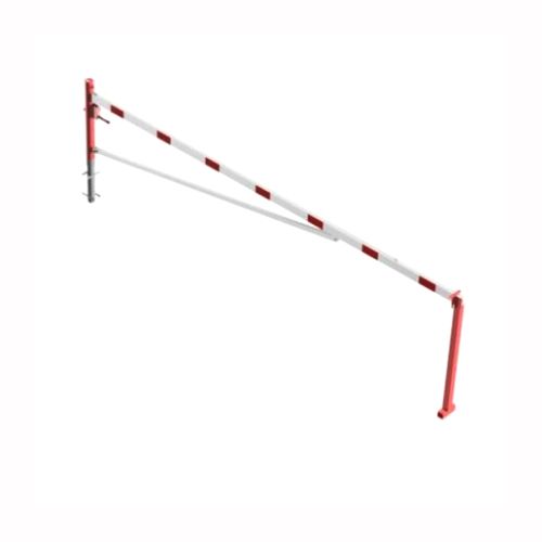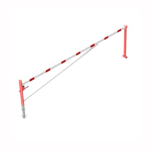 Horizontāli grozāma barjera (ar metāla trosi) ar atbalsta stabu (ar trijstūrveida slēdzeni), 5000mm (betonējama) [SCH]