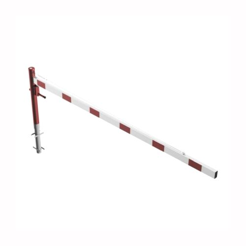 ar tapu, bloķēšana 4 pozīcijās (ik pēc 90 grādiem). Betonējama (ieteicamie betona pamata izmēri 550x550x900mm). Pieejams arī modelis, kur barjera stiprināma pie pamatnes (pēc pieprasījuma). Izmēri: horizontālās barjeras garums 3500mm, vertikālais stabs (karsti cinkots un krāsots sarkans) d=102mm, horizontālā barjera (alumīnija caurule) 100x50mm – balta ar sarkanām atstarojošām joslām, augstums virs zemes 950mm. Karsti cinkota ar baltu korpusu un sarkanām joslām. Svars: 36kg.