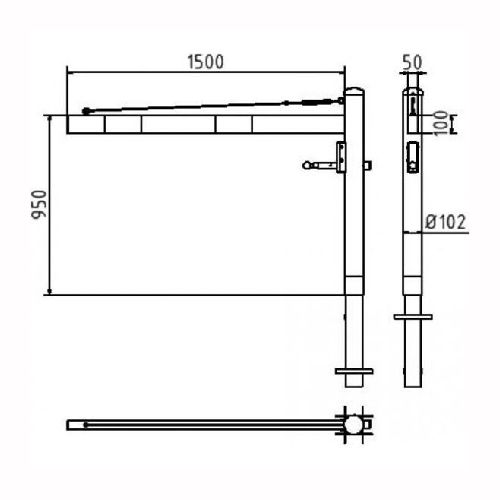 Horizontāli grozāma barjera (ar metāla trosi) bez atbalsta staba (ar piekaramo atslēgu), 1500mm (betonējama) [SCH]