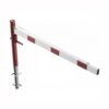 ar tapu, bloķēšana 4 pozīcijās (ik pēc 90 grādiem). Betonējama (ieteicamie betona pamata izmēri 550x550x900mm). Pieejams arī modelis, kur barjera stiprināma pie pamatnes (pēc pieprasījuma). Izmēri: horizontālās barjeras garums 2000mm, vertikālais stabs (karsti cinkots un krāsots sarkans) d=102mm, horizontālā barjera (alumīnija caurule) 100x50mm – balta ar sarkanām atstarojošām joslām, augstums virs zemes 950mm. Karsti cinkota ar baltu korpusu un sarkanām joslām. Svars: 33kg.