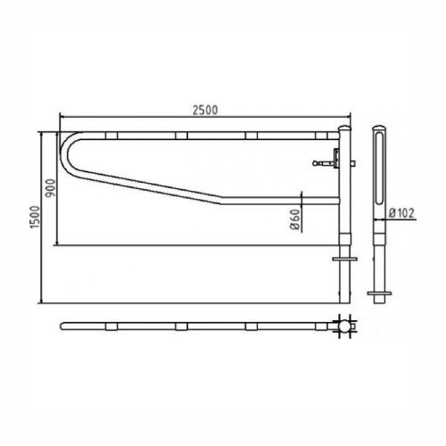 Atvērtā tipa horizontāli grozāma barjera bez atbalsta staba. Atvēršana/aizslēgšana ar piekaramo atslēgu (pieejama arī ar trijstūrveida slēdzeni vai euro-profila cilindru slēdzeni). Betonējama (ieteicamie betona pamata izmēri 550x550x900mm). Pieejams arī modelis, kur barjera stiprināma pie pamatnes (pēc pieprasījuma). Izmēri: kopējais platums 2500mm, vertikālais stabs d=102mm, horizontālā barjera d=60mm, augstums virs zemes 950mm. Sarkans korpuss ar baltām joslām. Svars: 40kg.