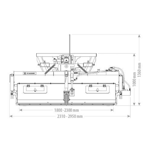 Ielu tīrīšanas birste TANK. Izmēri: darba platums 1800mm, kopējais platums 2310mm, kopējais augstums 1360mm, dziļums 1940mm. Reljefa sekošana. Atbalsta riteņi d=200mm (3gab.). Palešu dakšu ejas. Darba leņķa regulēšana. Bezpakāpju birstes augstuma regulēšana. Kombinēta metāla-polipropilēna birste. Atkritumu tvertne (mehāniska vai hidrauliska). Aspkates lūkas tvertnē. Darba spiediens: 150 bāri (25L/min.). Svars: 415kg.