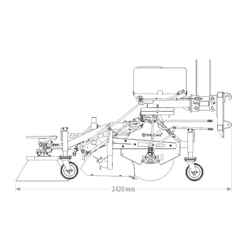 Ielu tīrīšanas birste TANK BRUSH HYDRO. Izmēri: darba platums 2300mm, kopējais platums 3060mm, kopējais augstums 1360mm, dziļums 2420mm. Reljefa sekošana. Atbalsta riteņi d=200mm (3gab.). Palešu dakšu ejas. Darba leņķa regulēšana. Bezpakāpju birstes augstuma regulēšana. Kombinēta metāla-polipropilēna birste. Atkritumu tvertne (mehāniska vai hidrauliska). Sāna birste (kreisā vai labā). Aspkates lūkas tvertnē. Ūdens smidzinātāju sistēma (175L ūdens tvertne). Darba spiediens: 150 bāri (35L/min.). Svars: 532kg.