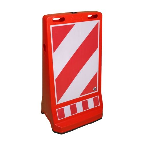 Ietves brīdinājuma panelis (abpusējs ar 2.atstarošanas klases līmplēvi). Krāsa: sarkanbalta. Neslīdoša gumijas pamatne. Izmēri: garums 495mm, platums 395mm, augstums 905mm. Izgatavots no polipropilēna. M36 vītnes caurums zīmes paneļa uzlikšanai. Svars: 7kg.
