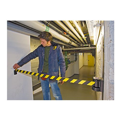 Izvelkama norobežošanas lenta ar sienas stiprinājumu, dzeltenmelna (4m)