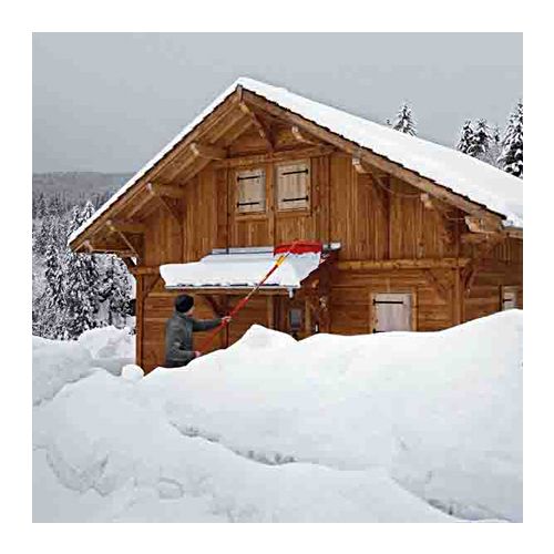 Jumta tīrāmā sniega lāpsta. Krāsa: sarkana. Izmēri: augstums 27cm, garums 60cm, kāta garums 400cm. Kāts teleskopisks (izbīdāms).