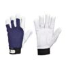 Kazādas darba cimdi ar silto oderi (aizdare ar klipsi). Kombinēti ar kokvilnu, iekšpusē ar siltu flaneļa pūku visā cimdā. Flaneļa siltinājums neļauj rokām sasvīst un saglabā nemainīgas siltumizolācijas īpašības. Augšdaļa – stingrs kokvilnas audums tumši zilā krāsā. Plaukstas daļa – dabīga, gluda kazas āda. Pieejamie izmēri: 10. vai 11. Iepakojumā: 12gab. (cena norādīta par gab.).